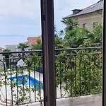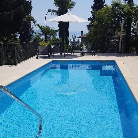 ベッドルーム1室のNautico Apartment With Swimming Pool オパティヤは聖ヤコブ教会から歩いて14分です。 Obalno šetalište Franje Josipa Iすぐ近くのこの47m²のアパートは、海辺の景色を望むテラスを提供しています。